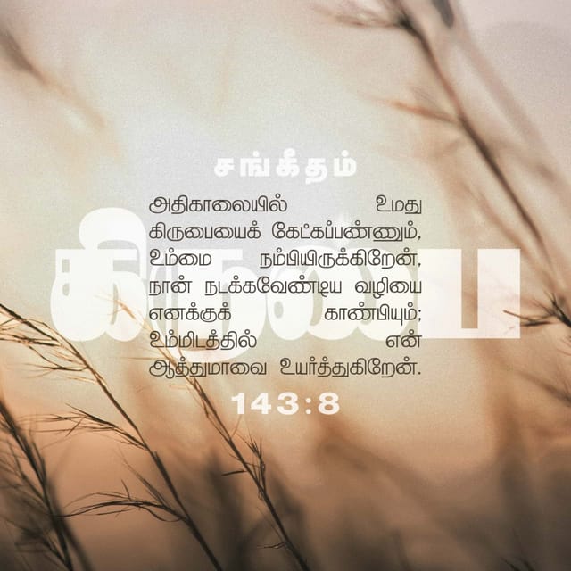 அதிகாலையில் உமது கிருபையைக் கேட்கப்பண்ணும், உம்மை நம்பியிருக்கிறேன், நான் நடக்கவேண்டிய வழியை எனக்குக் காண்பியும். உம்மிடத்தில் என் ஆத்துமாவை உயர்த்துகிறேன். (சங்.143:8)