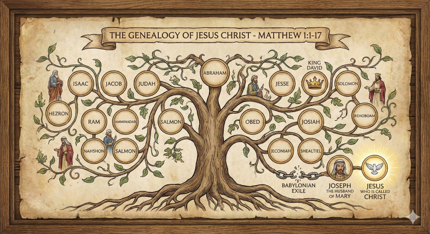 புதிய ஏற்பாட்டின் முதல் 17 வசனங்களில் காணப்படும் இயேசு கிறிஸ்துவின் வம்சாவளியைப் பற்றி இப்பகுதி விவரிக்கிறது. இதன் தலைப்பு இதை “இயேசு கிறிஸ்துவின் வம்ச வரலாறு” என்று குறிப்பிடுகிறது; இது இயேசுவின் முன்னோர்களையும் அவரது பிறப்பையும் உள்ளடக்கியது. இயேசு தாவீதின் குமாரனும், ஆபிரகாமின் குமாரனும் என்பதை நிரூபிப்பதே இந்த வம்சாவளியின் முக்கிய நோக்கமாகும். இது மேசியாவைப் பற்றிய வாக்குத்தத்தங்களின் நிறைவேற்றத்தைக் காட்டுகிறது. ஆபிரகாமும் தாவீதும் மையக் கதாபாத்திரங்கள் ஆவர், இவர்களிடமிருந்தே மேசியாவைப் பற்றிய வாக்குத்தத்தம் தொடங்குகிறது. தாமதம் மற்றும் சந்தேகத்தின் காலங்களிலும் வாக்குத்தத்தங்களின் நிறைவேற்றம் உண்மையாகவே இருக்கிறது என்பதை இந்த வம்சாவளி வெளிப்படுத்துகிறது.