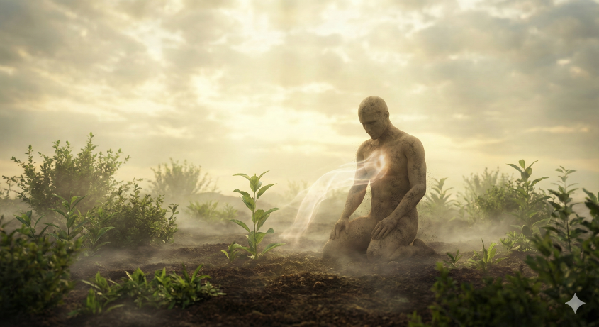 மனிதன் “பூமியின் மண்ணிலிருந்து” உருவாக்கப்பட்டான் என்று மனிதப் படைப்பு பற்றிய பகுதி காட்டுகிறது. இது அவனது மண்ணுக்குரிய தன்மையை வலியுறுத்துகிறது. மனிதன் கடவுளின் ஒரு தலைசிறந்த படைப்பு ; அவன் மிகுந்த கவனத்துடன் படைக்கப்பட்டான். ஆனால், மனிதனின் ஆன்மா கடவுளிடமிருந்து நேரடியாக வந்தது; அதுவே உடலுக்கு உயிரைக் கொடுக்கிறது. ஆன்மா ஒரு மேலான தோற்றத்தைக் கொண்டது. அதை அவமதிக்கவோ அல்லது அற்பமாக எண்ணவோ கூடாது, ஏனெனில் கடவுள் மட்டுமே அதைப் புதுப்பிக்க முடியும்.