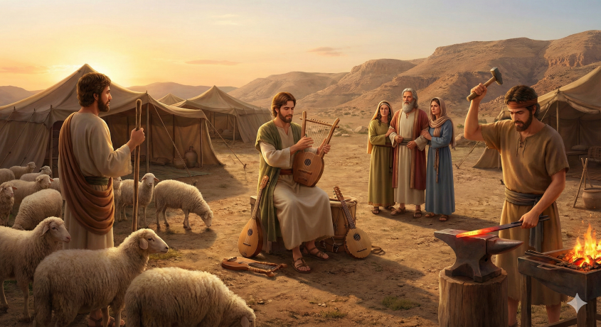வசனங்கள் 19 முதல் 22 வரை, காயீனின் சந்ததியான லாமேக்கு இரண்டு பெண்களைத் திருமணம் செய்த பாவத்தைச் செய்திருந்தாலும், அவன் திறமையான பிள்ளைகளால் ஆசீர்வதிக்கப்பட்டான் என்று விவரிக்கப்பட்டுள்ளது. யாவால் ஒரு வெற்றிகரமான மேய்ப்பனாகவும், யூபால் ஒரு புகழ்பெற்ற இசைக்கலைஞனாகவும், தூபால் காயீன் ஒரு சிறந்த கொல்லனாகவும் இருந்தனர். கடவுளின் கிருபையைப் பெறாத மனிதர்கள் கூட, தங்களைப் பிரபலமாக்கும் குறிப்பிடத்தக்க திறமைகளைக் கொண்டிருக்க முடியும் என்பதை இது காட்டுகிறது.