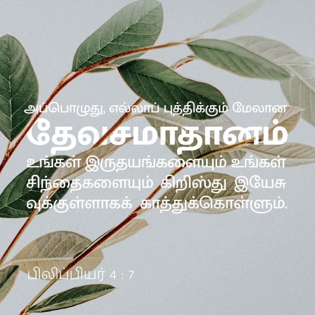 அப்பொழுது, எல்லாப் புத்திக்கும் மேலான தேவசமாதானம் உங்கள் இருதயங்களையும் உங்கள் சிந்தைகளையும் கிறிஸ்து இயேசுவுக்குள்ளாகக் காத்துக்கொள்ளும்.