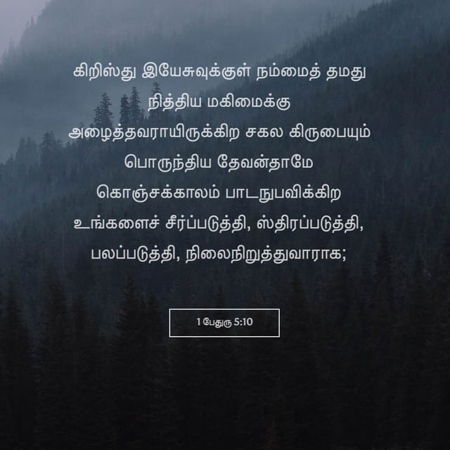 கிறிஸ்து இயேசுவுக்குள் நம்மைத் தமது நித்திய மகிமைக்கு அழைத்தவராயிருக்கிற சகல கிருபையும் பொருந்திய தேவன்தாமே கொஞ்சக்காலம் பாடநுபவிக்கிற உங்களைச் சீர்ப்படுத்தி, ஸ்திரப்படுத்தி, பலப்படுத்தி, நிலைநிறுத்துவராக.