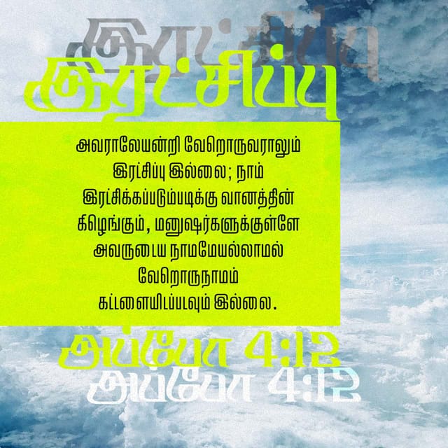 அவராலேயன்றி வேறொருவராலும் இரட்சிப்பு இல்லை. நாம் இரட்சிக்கப்படும்படிக்கு வானத்தின் கீழெங்கும், மனுஷர்களுக்குள்ளே அவருடைய நாமமேயல்லாமல் வேறொரு நாமம் கட்டளையிடப்படவும் இல்லை என்றான்.