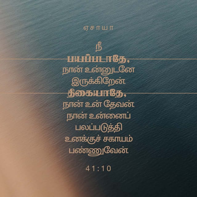 நீ பயப்படாதே, நான் உன்னுடனே இருக்கிறேன். திகையாதே, நான் உன் தேவன். நான் உன்னைப் பலப்படுத்தி உனக்குச் சகாயம்பண்ணுவேன். என் நீதியின் வலதுகரத்தினால் உன்னைத் தாங்குவேன்.