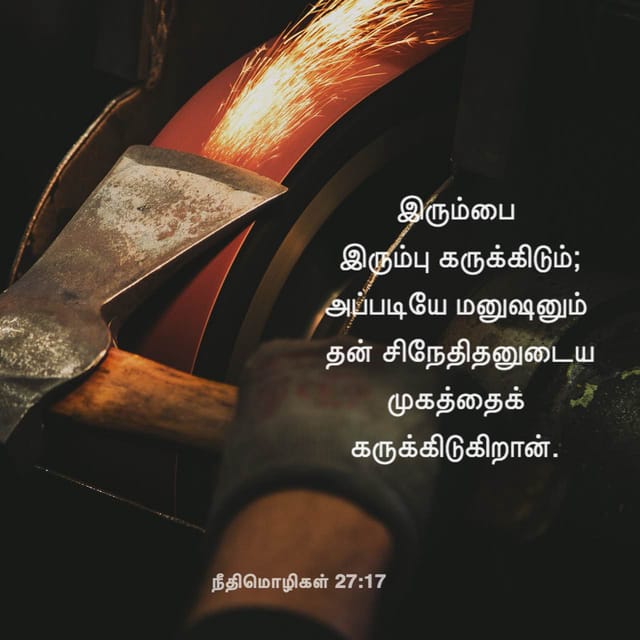 இரும்பை இரும்பு கருக்கிடும். அப்படியே மனுஷனும் தன் சிநேகிதனுடைய முகத்தைக் கருக்கிடுகிறான்.