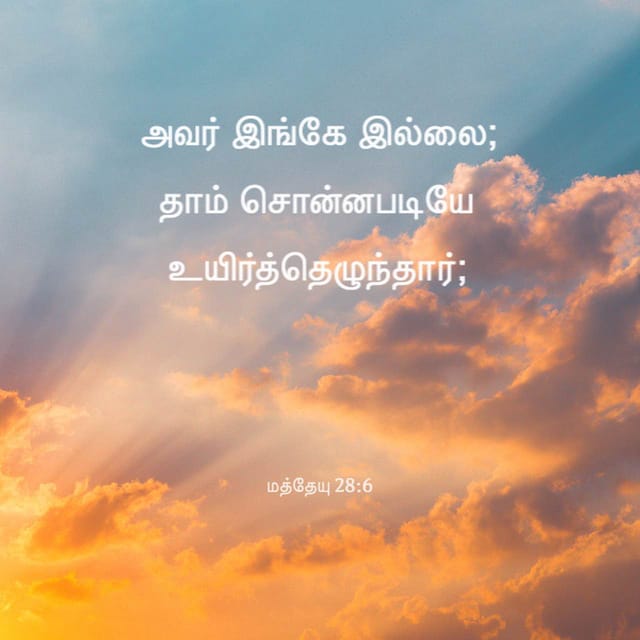 அவர் இங்கே இல்லை. தாம் சொன்னபடியே உயிர்த்தெழுந்தார்@ கர்த்தரை வைத்த இடத்தை வந்து பாருங்கள்.