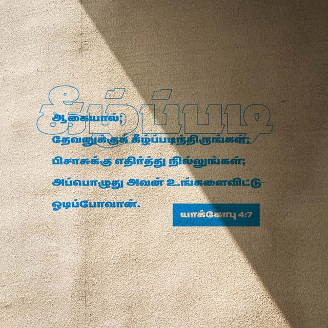 ஆகையால், தேவனுக்குக் கீழ்ப்படிந்திருங்கள். பிசாசுக்கு எதிர்த்து நில்லுங்கள், அப்பொழுது அவன் உங்களைவிட்டு ஓடிப்போவான்.