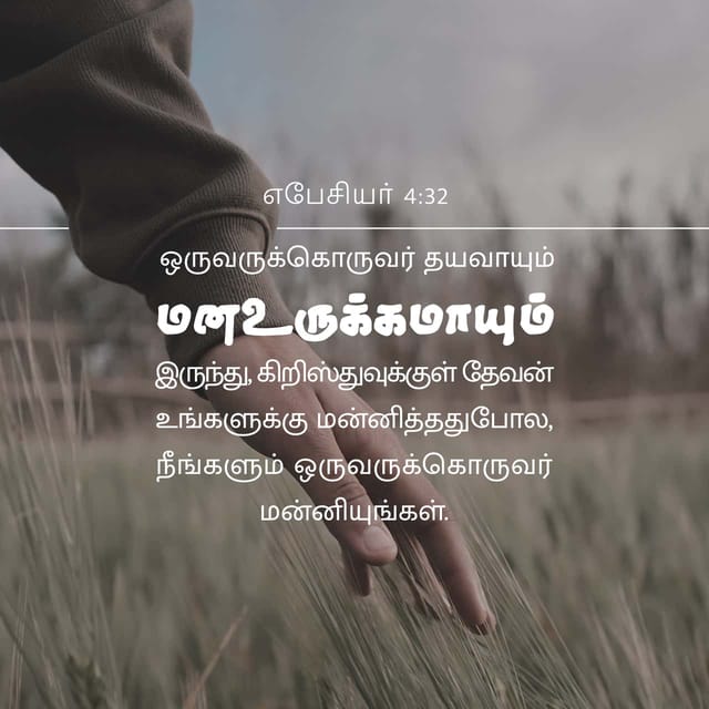 சகலவிதமான கசப்பும், கோபமும், மூர்க்கமும், கூக்குரலும், துஷணமும், மற்ற எந்தத் துர்க்குணமும் உங்களை விட்டு நீங்கக்கடவது. ஒருவருக்கொருவர் தயவாயும் மனஉருக்கமாயும் இருந்து, கிறிஸ்துவுக்குள் தேவன் உங்களுக்கு மன்னித்ததுபோல, நீங்களும் ஒருவருக்கொருவர் மன்னியுங்கள்.