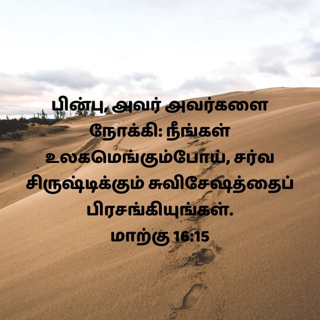 பின்பு, அவர் அவர்களை நோக்கி: நீங்கள் உலகமெங்கும் போய், சர்வ சிருஷ்டிக்கும் சுவிசேஷத்தைப் பிரசங்கியுங்கள்.