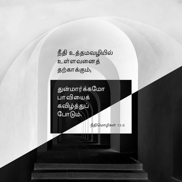 நீதி உத்தமமார்க்கத்தானைத் தற்காக்கும். துன்மார்க்கமோ பாவியைக் கவிழ்த்துப்போடும்.