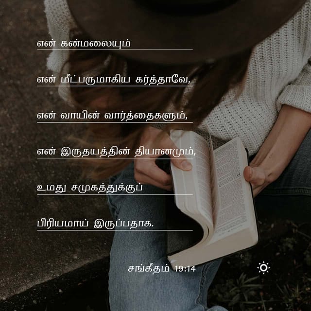 என் கன்மலையும் என் மீட்பருமாகிய கர்த்தாவே, என் வாயின் வார்த்தைகளும், என் இருதயத்தின் தியானமும், உமது சமுகத்தில் பிரீதியாயிருப்பதாக. (சங்.19:14)
