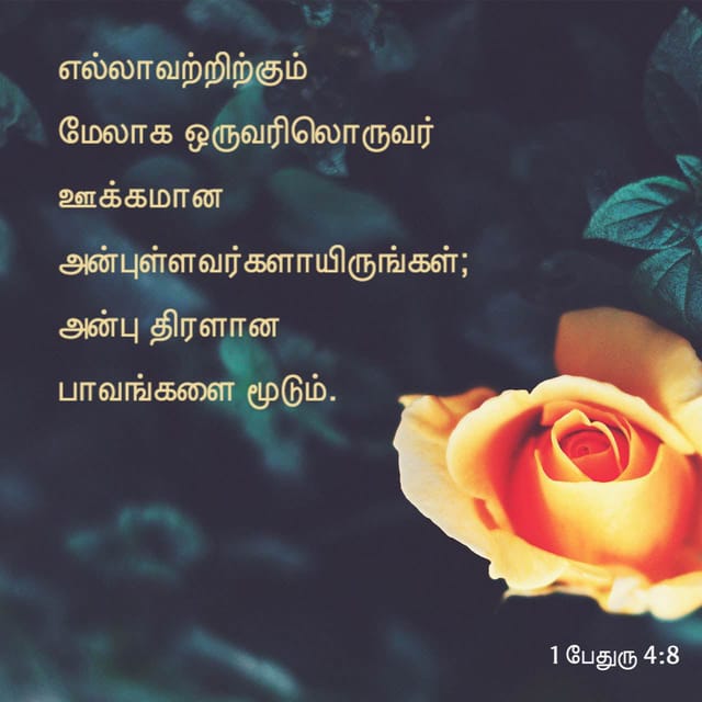 எல்லாவற்றிற்கும் மேலாக ஒருவரிலொருவர் ஊக்கமான அன்புள்ளவர்களாயிருங்கள்@ அன்பு திரளான பாவங்களை மூடும்.
