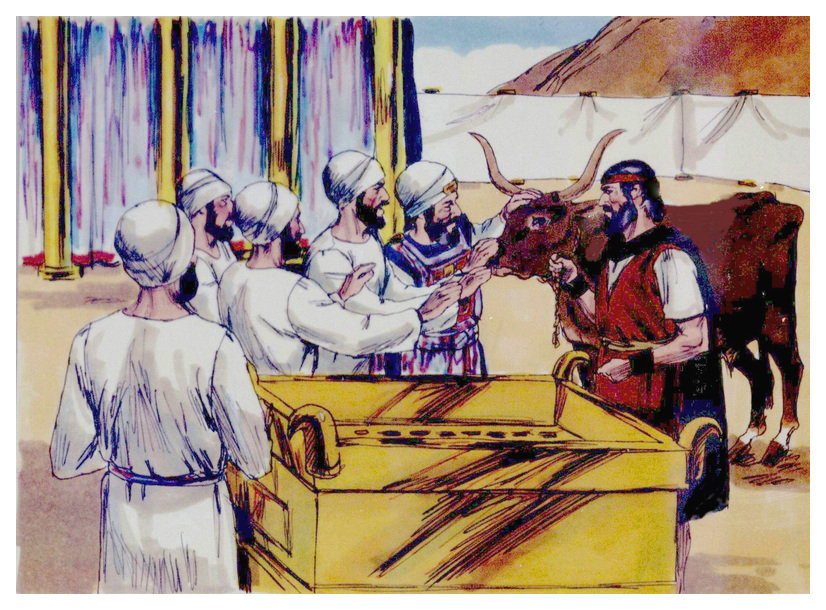 10 காளையை ஆசரிப்புக் கூடாரத்துக்கு முன்பாகக் கொண்டுவருவாயாக; அப்பொழுது ஆரோனும் அவன் குமாரரும் தங்கள் கைகளைக் காளையினுடைய தலையின்மேல் வைக்கக்கடவர்கள்.