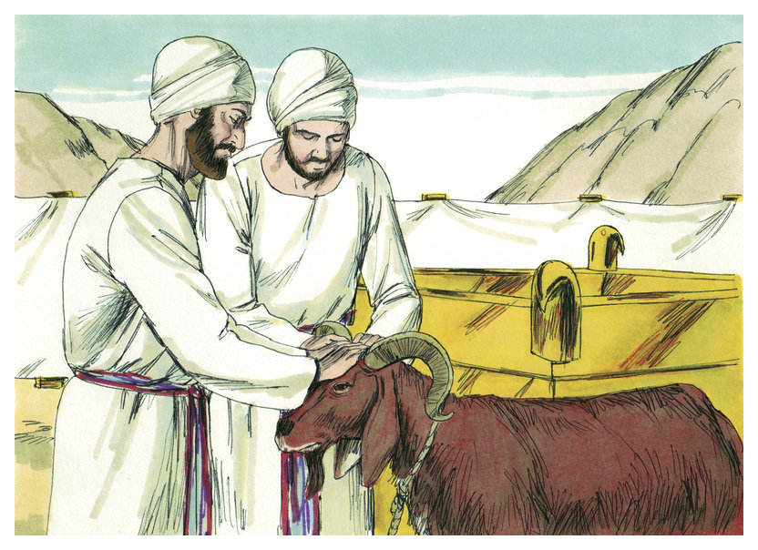 15 பின்பு அந்த ஆட்டுக்கடாக்களில் ஒன்றைக் கொண்டுவந்து நிறுத்துவாயாக; அதினுடைய தலையின்மேல் ஆரோனும் அவன் குமாரரும் தங்கள் கைகளை வைக்கக்கடவர்கள்.
