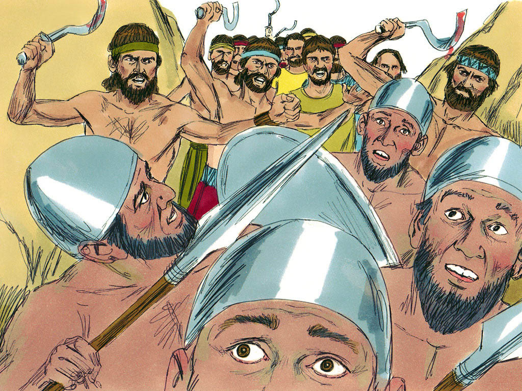 22 பட்டணத்திலிருந்தவர்களும் அவர்களுக்கு எதிர்ப்பட்டதினால், சிலர் இப்புறத்திலும் சிலர் அப்புறத்திலுமிருந்த இஸ்ரவேலின் நடுவே அகப்பட்டுக்கொண்டார்கள்; ஆகையால் அவர்களில் ஒருவனும் தப்பி மீந்திராதபடிக்கு அவர்களை வெட்டிப்போட்டு,