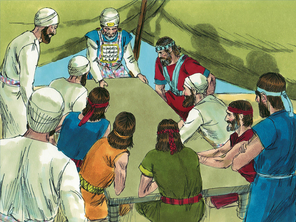 23 அவைகளைக் கூடாரத்தின் மத்தியிலிருந்து எடுத்து யோசுவாவினிடத்திலும் இஸ்ரவேல் புத்திரர் எல்லாரிடத்திலும் கொண்டுவந்து, கர்த்தருடைய சமுகத்தில் வைத்தார்கள்.