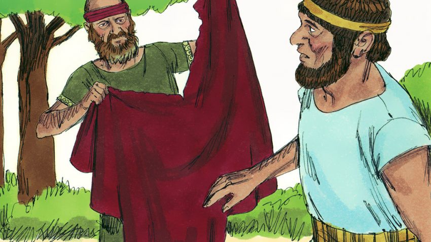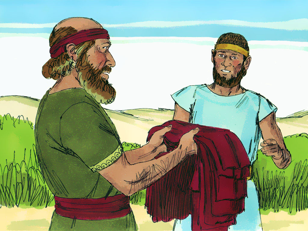 30 அகியா தான் போர்த்துக்கொண்டிருந்த புதுச்சால்வையைப் பிடித்து, அதைப் பன்னிரண்டு துண்டாகக் கிழித்துப்போட்டு,