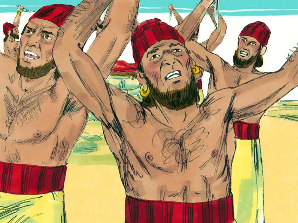 28 அவர்கள் உரத்தசத்தமாய்க் கூப்பிட்டு, தங்கள் வழக்கத்தின்படியே இரத்தம் தங்கள்மேல் வடியுமட்டும் கத்திகளாலும் ஈட்டிகளாலும் தங்களைக் கீறிக்கொண்டார்கள்.