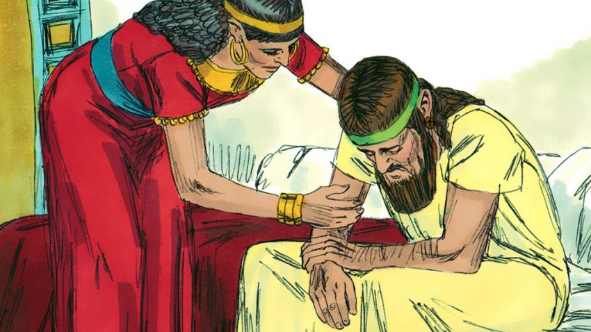 5 அப்பொழுது அவன் மனைவியாகிய யேசபேல் அவனிடத்தில் வந்து: நீர் போஜனம்பண்ணாதபடிக்கு, உம்முடைய மனம் சலிப்பாயிருக்கிறது என்ன என்று அவனைக் கேட்டதற்கு,