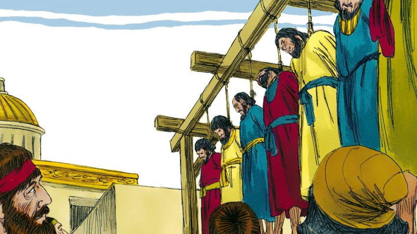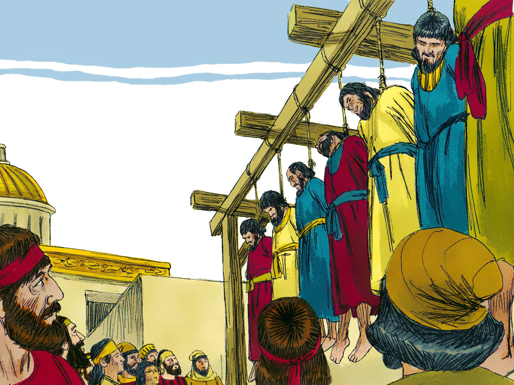 25 ஆனாலும் எஸ்தர், ராஜசமுகத்தில்போய், யூதருக்கு விரோதமாய் அவன் நினைத்த அவனுடைய பொல்லாத யோசனை அவனுடைய தலையின்மேல் திரும்பும்படி கட்டளை பிறப்பித்ததினாலே, அவனையும் அவன் குமாரரையும் மரத்திலே தூக்கிப்போட்டார்கள்.